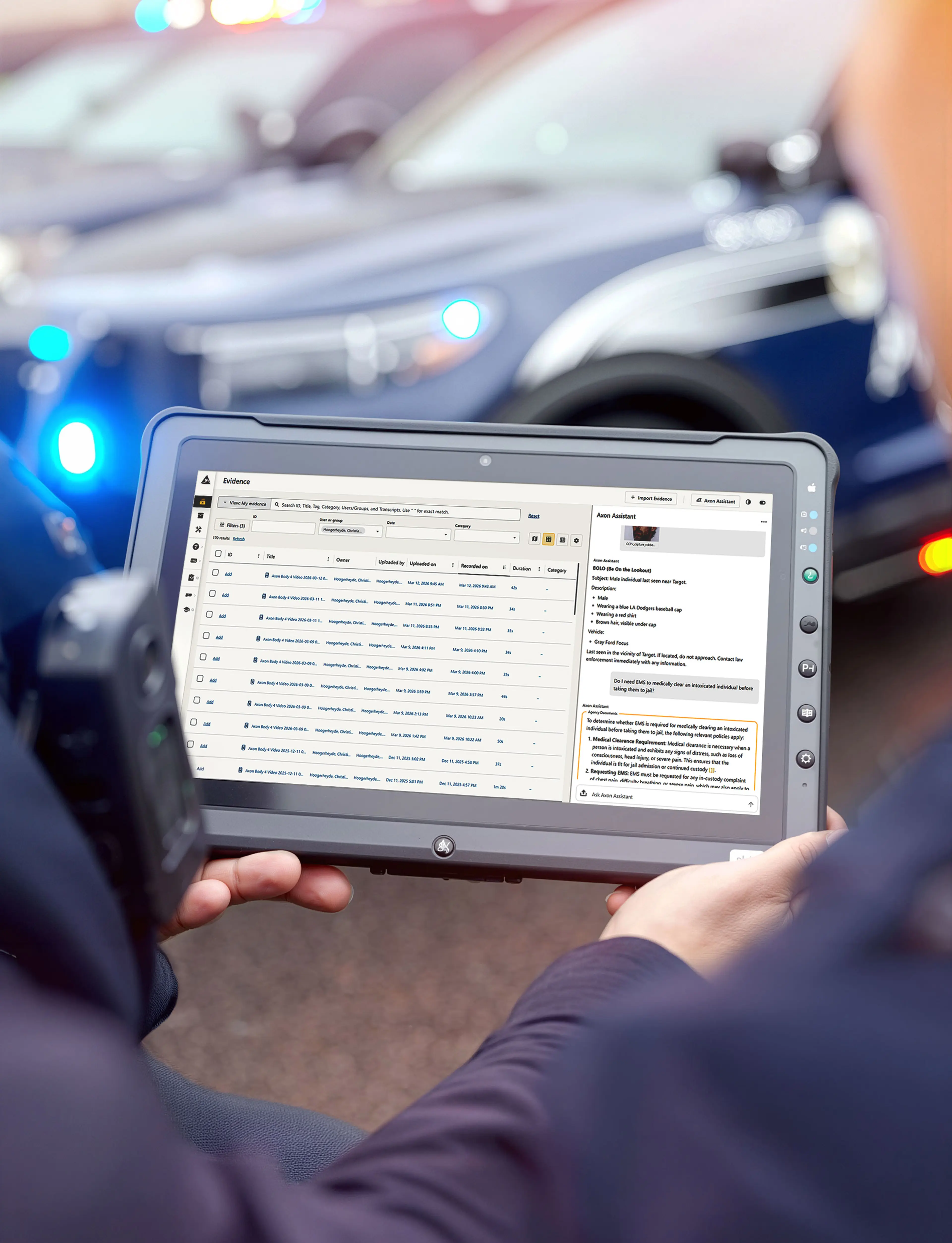 Start work at your desk, continue in the field. Axon Assistant keeps a single shared conversation across Evidence.com, Axon Mobile, ABW Mini and AB4 so context stays with you, not with a device.